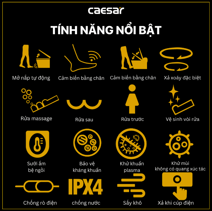 Danh mục: Thiết Bị Vệ Sinh | Bồn Cầu | Bồn cầu CAESAR | Bồn Cầu Thông Minh Caesar