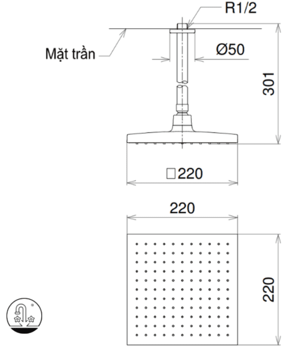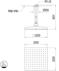 Thông Số Kỹ Thuật Của Bát Sen Gắn Trần TOTO DB144-1CR Vuông 220mm