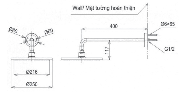 Thông số Bát Sen Gắn Tường TOTO TBW07002A Tròn 250mm