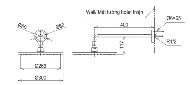 Thông số Bát Sen Gắn Tường TOTO TBW07003A Tròn 250mm