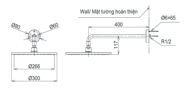 Thông số Bát Sen Gắn Tường TOTO TBW07004A/TBN01002B Tròn 250mm
