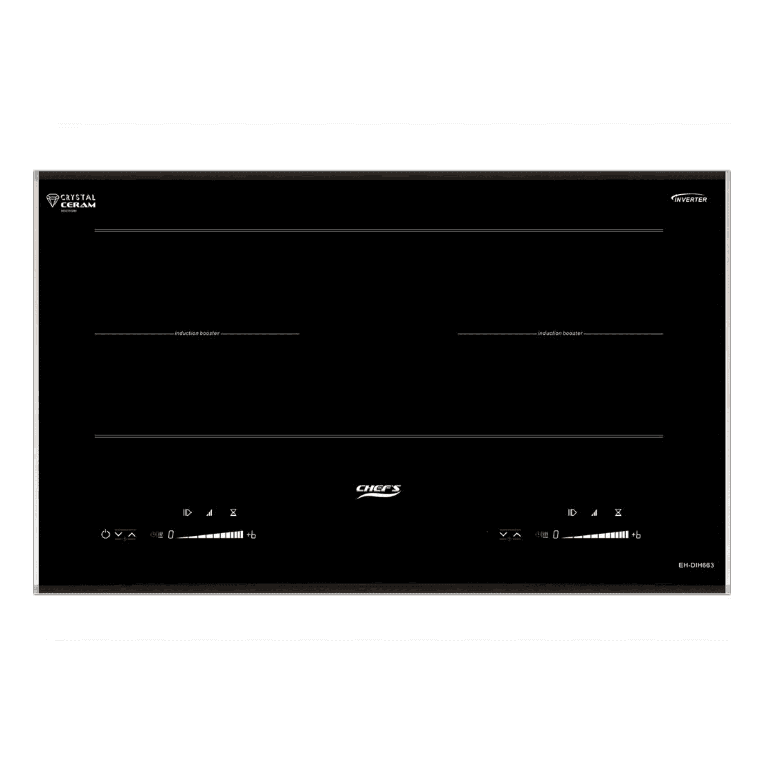 Bếp từ đôi Chefs EH-DIH663 sở hữu thiết kế tối giản với mặt kính Crystal Ceram đen bóng, có khả năng chịu lực, chịu nhiệt tốt và chống sốc nhiệt. Viền nhôm ở hai cạnh bên giúp bảo vệ bếp khỏi nứt vỡ khi va đập và dễ dàng vệ sinh. Bếp sử dụng mâm từ E.G.O của Đức, nổi tiếng về độ bền bỉ và an toàn.