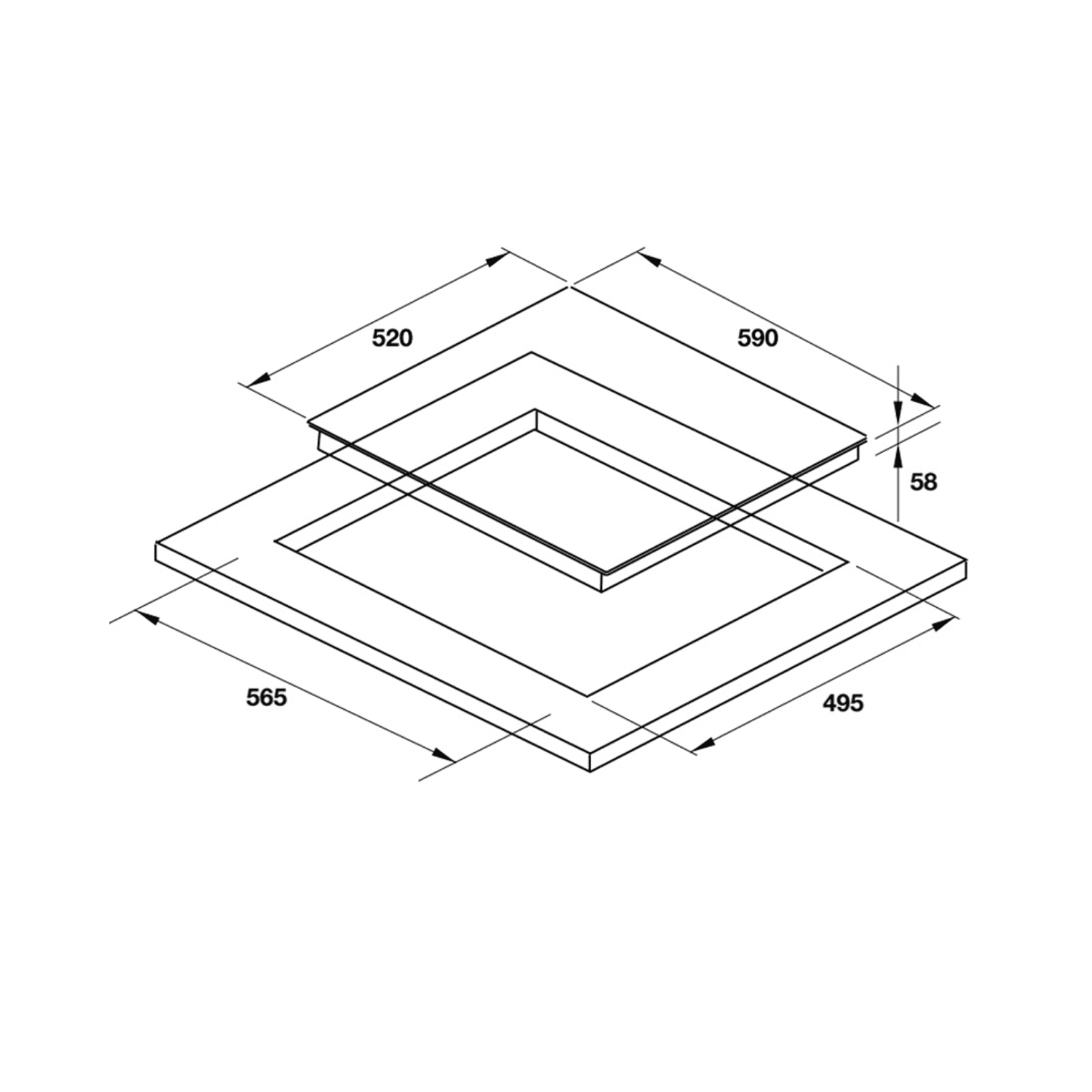 • Kích thước khoét đá: 565 x 495 mm