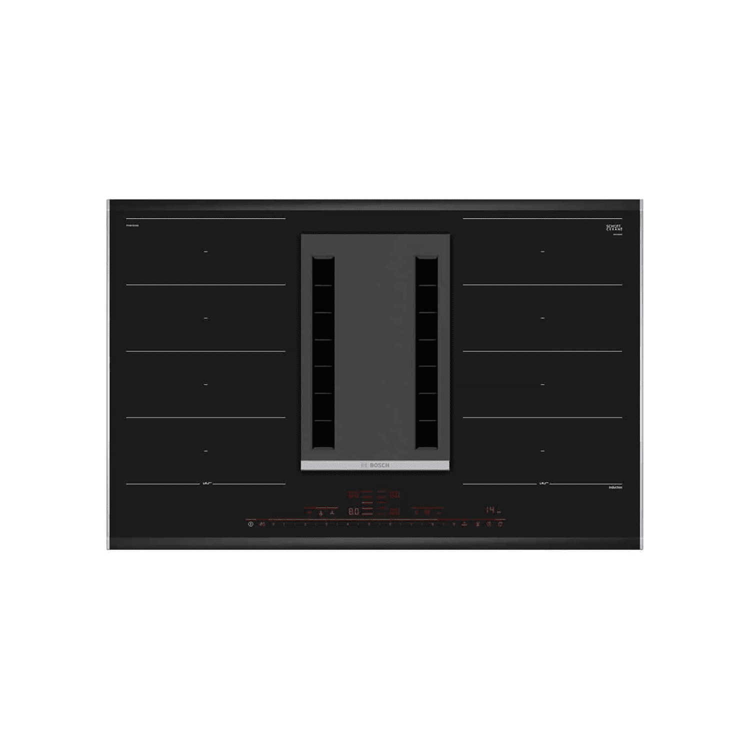 Điểm đặc biệt của Bosch PXX875D34E là tích hợp máy hút mùi downdraft hiện đại ngay trên bếp. Hệ thống này là giải pháp thẩm mỹ và tiện lợi, giúp loại bỏ khói và mùi thức ăn nhanh chóng, giữ không gian bếp luôn trong lành, sạch sẽ và thoáng đãng.