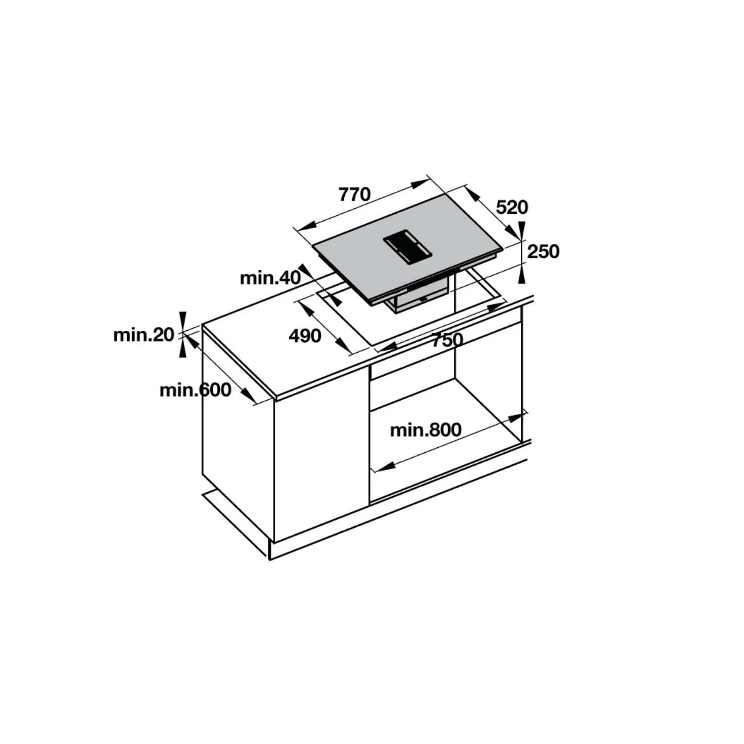 Với kích thước tổng thể 770 x 520 x 250 mm và kích thước khoét đá 750 x 490 mm, sản phẩm phù hợp với hầu hết thiết kế bếp hiện đại, mang đến giải pháp nấu ăn toàn diện và gọn gàng trong một thiết bị duy nhất.