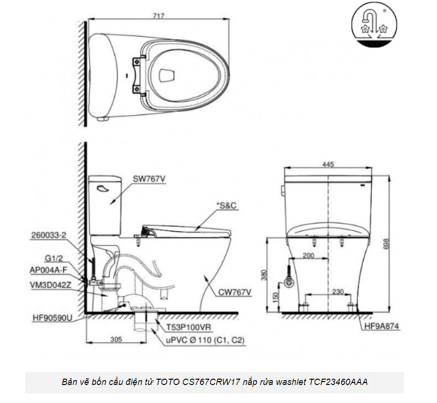 3 đánh giá cho Bồn Cầu Điện Tử TOTO CS767CRW17#XW Kèm Nắp Rửa Điện Tử WASHLET (Loại Giấu Dây) Dòng C2 – TCF23460AAA (220V)