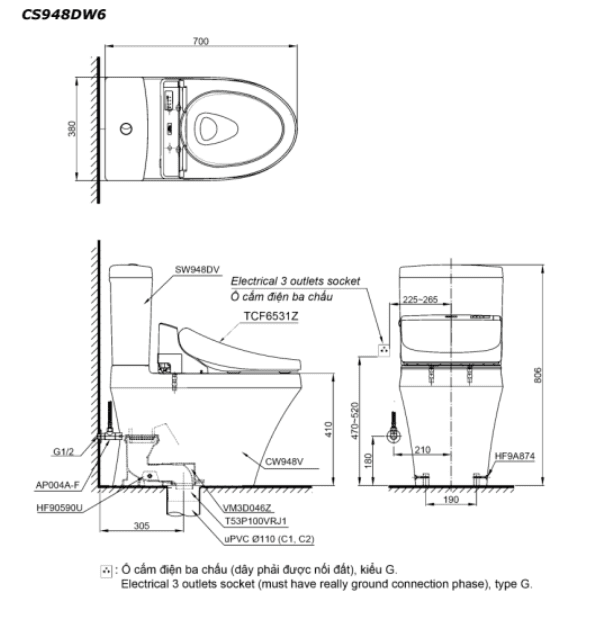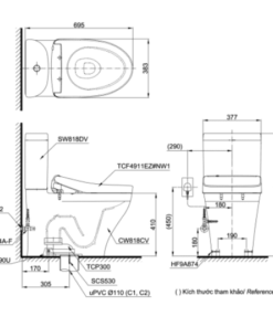 Bản vẽ Bồn Cầu Điện Tử TOTO CS948DW6#XW