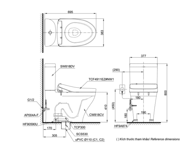 2 đánh giá cho Bồn Cầu Điện Tử TOTO CS818DW6#XW Kèm Nắp Rửa Điện Tử WASHLET Dòng C5 – TCF6531Z (220V)