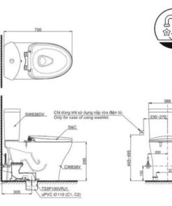 Tham khảo thêm bản vẽ kỹ thuật của bệt liền khối TOTO CS838DW14 để thuận tiện hơn trong việc lắp đặt ngay tại nhà nhé!