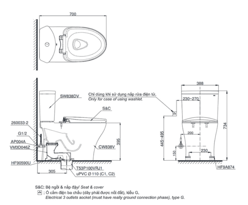 Xem thêm bản vẽ kỹ thuật của bon cau dien tu TOTO CS838DW7 để thuận tiện hơn trong việc lắp đặt ngay tại nhà nhé!