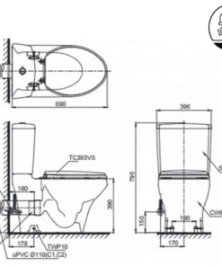 Hệ thống xả Siphon giúp bàn cầu tiết kiệm nước trong quá trình xả và tốc độ dòng chảy lớn để kéo chất thải đi nhanh hơn, sạch hơn.