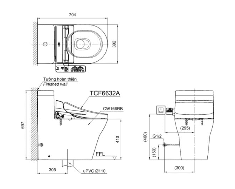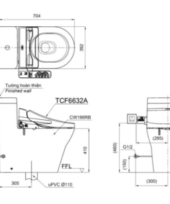 Bản vẽ Bồn Cầu Điện Tử TOTO CW166RB#XW