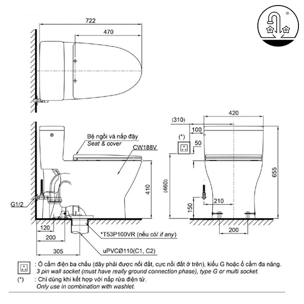 Review Bồn Cầu Điện Tử TOTO MS188VKW14#XW/T53P100VR Kèm Nắp Rửa Điện Tử WASHLET Dòng C5 – TCF24410AAA (220V)