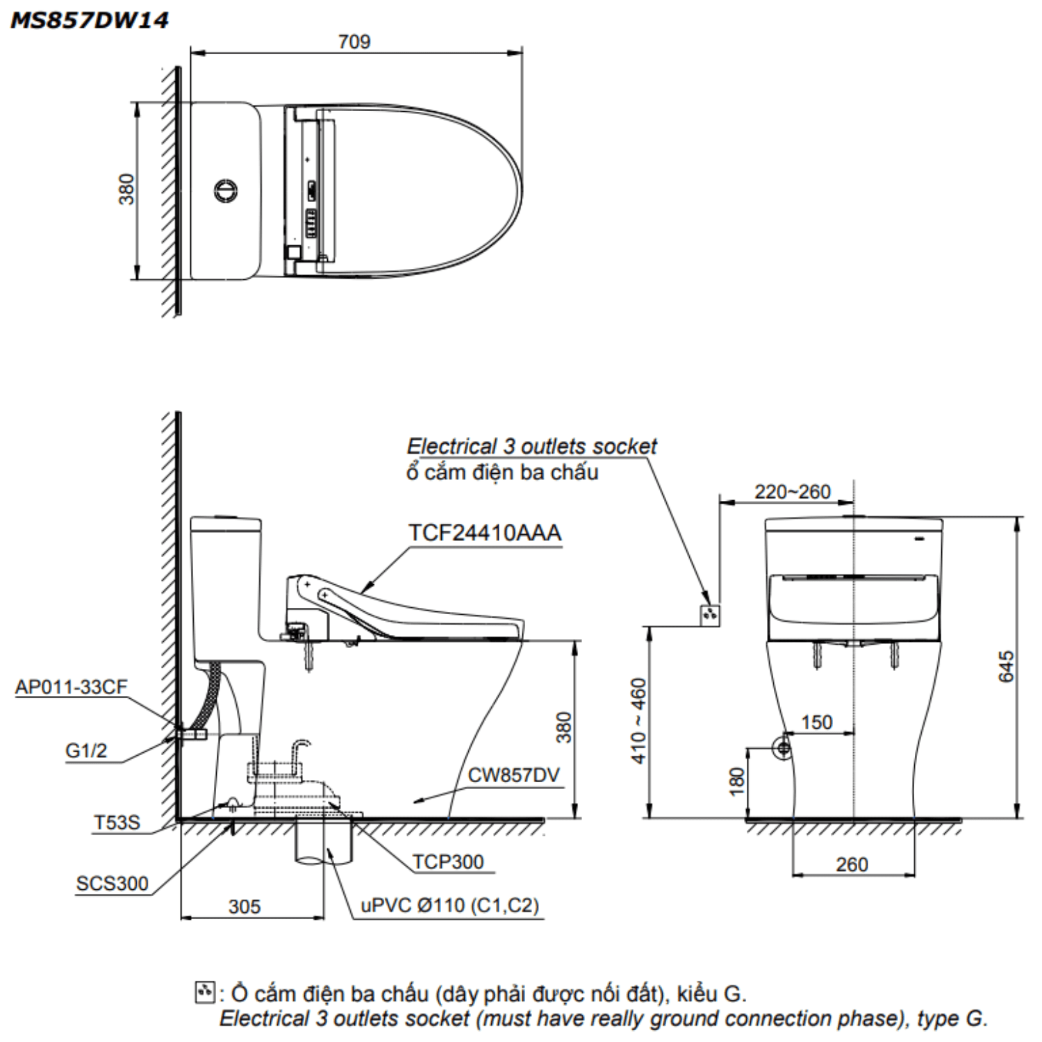 Review Bồn cầu điện tử TOTO MS857DW14 1 khối kèm nắp rửa điện tử WASHLET dòng C5 – TCF24410AAA