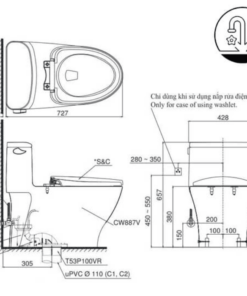 Xem thêm bản vẽ kỹ thuật của bệt liền khối MS887RW14 để thuận tiện hơn trong việc lắp đặt tại nhà nhé!