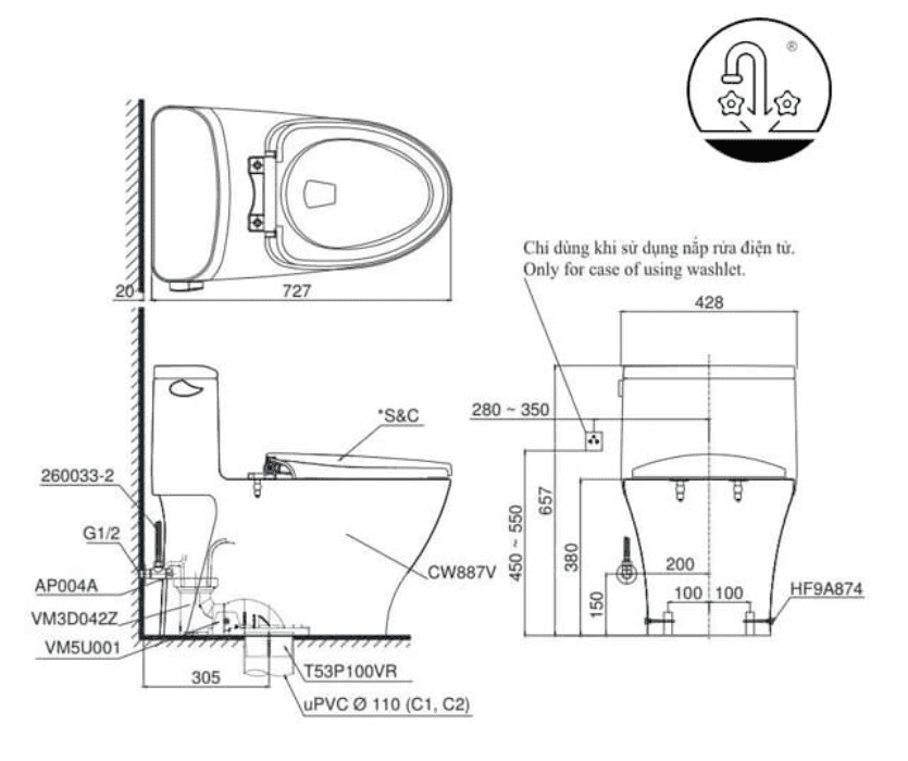 3 đánh giá cho Bồn Cầu Điện Tử TOTO MS887RW14#XW Kèm Nắp Rửa Điện Tử WASHLET Dòng C5 – TCF24410AAA (220V)