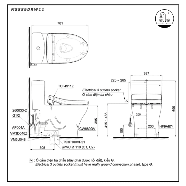 3 đánh giá cho Bồn Cầu Điện Tử TOTO MS889DRW11#XW Kèm Nắp Rửa Điện Tử WASHLET Dòng S7 – TCF4911Z (220V)