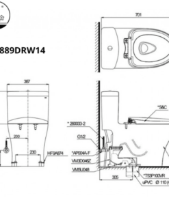 Xem thêm bản vẽ kỹ thuật của bồn cầu TOTO thông minh MS889DRW14 để thuận tiện hơn trong việc lắp đặt tại nhà nhé!