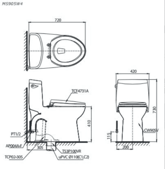 Bồn cầu ToTo MS905W6 cũng giống như cái mã số bồn cầu MS905T3, MS905T2, mới nhất năm 2019 là MS905T8 với cái nắp T8 cực kỳ mỏng và đẹp. Đang chiếm lĩnh thị trường với doanh số cực ổn định. Còn bồn cầu mình đang xem là có gắn cái nắp “W6” là nắp rửa điện tử TCF6531Z – Xuất xứ: Malaysia.