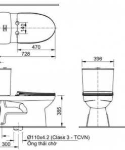 • Kích thước bồn cầu: 728 x 396 x 724 mm (DxRxC).