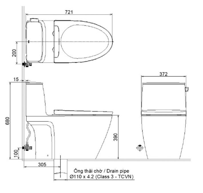 | Cửa xả | 1 xoáy, 1 đẩy trợ lực | |