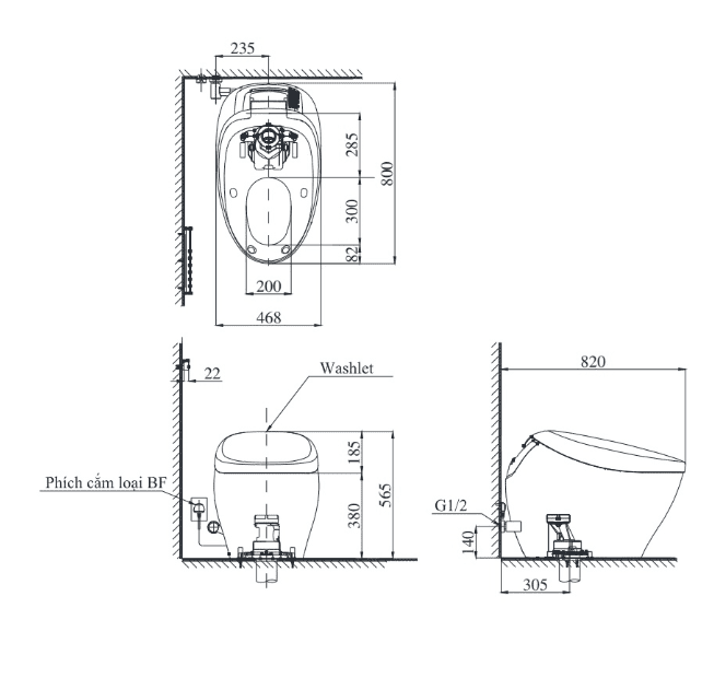Bản vẽ Bồn cầu thông minh TOTO CS901VT#NW1/T53P100VR