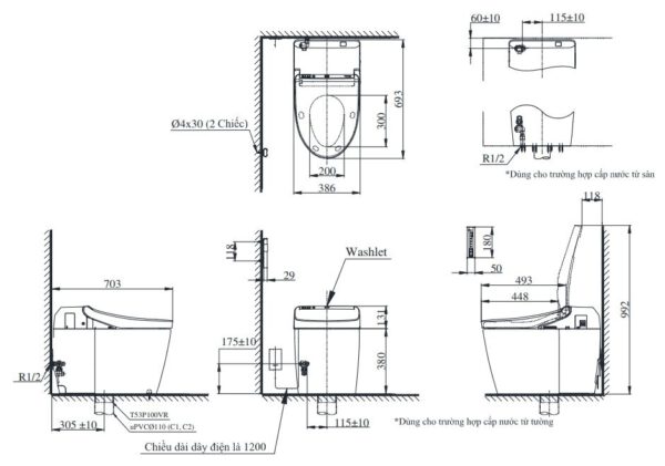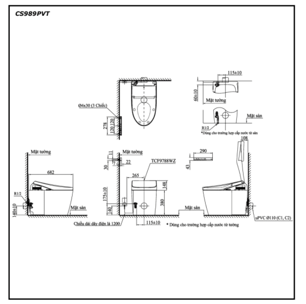 Bản vẽ Bồn cầu thông minh TOTO CS989PVT#NW1/TCF9788WZ#NW1