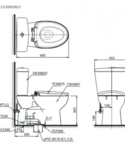 Sau đây là bản vẽ kỹ thuật của loại bàn cầu này giúp bạn có thể dễ dàng lắp đặt ngay tại nhà