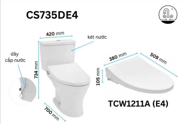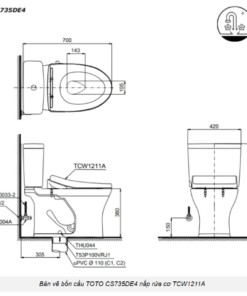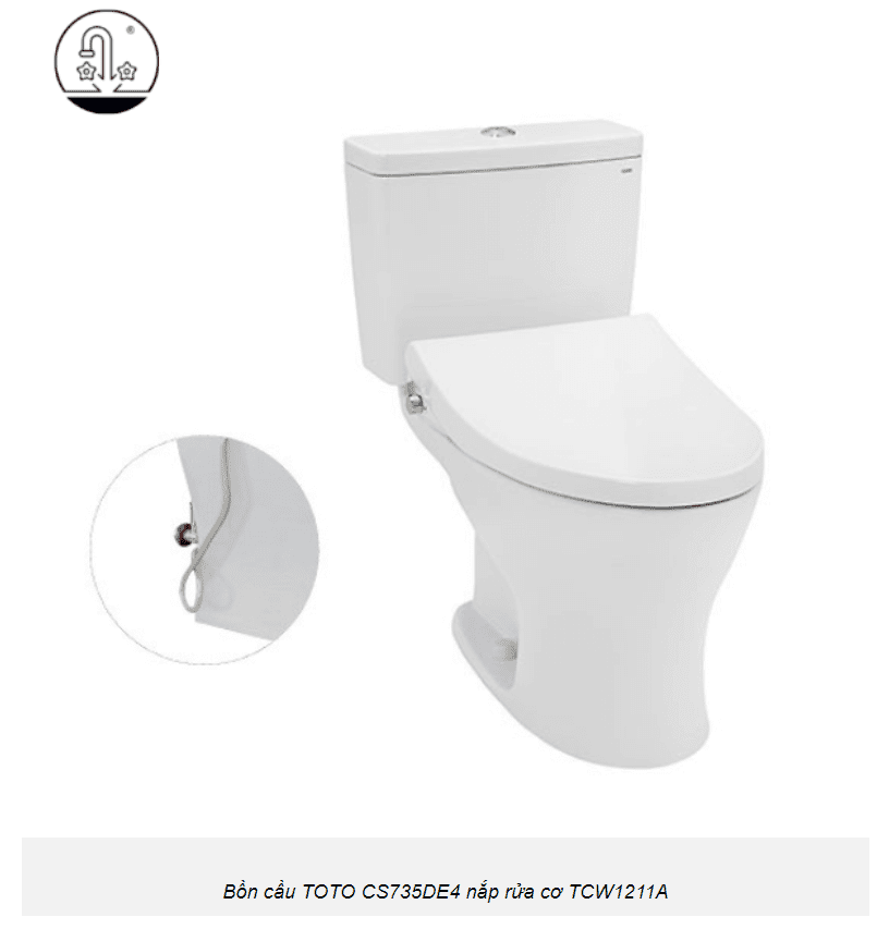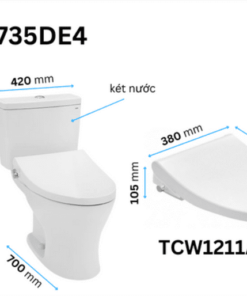 Bồn cầu thông minh TOTO CS735DE4 2 khối có thiết kế sang trọng với thân dài và tròn, vành kín. Sản phẩm trang bị nắp đóng êm kèm vòi rửa nước lạnh Eco-washer. Bề mặt siêu nhẵn hạn chế tối đa các vết bẩn và ngăn ngừa vi khuẩn.