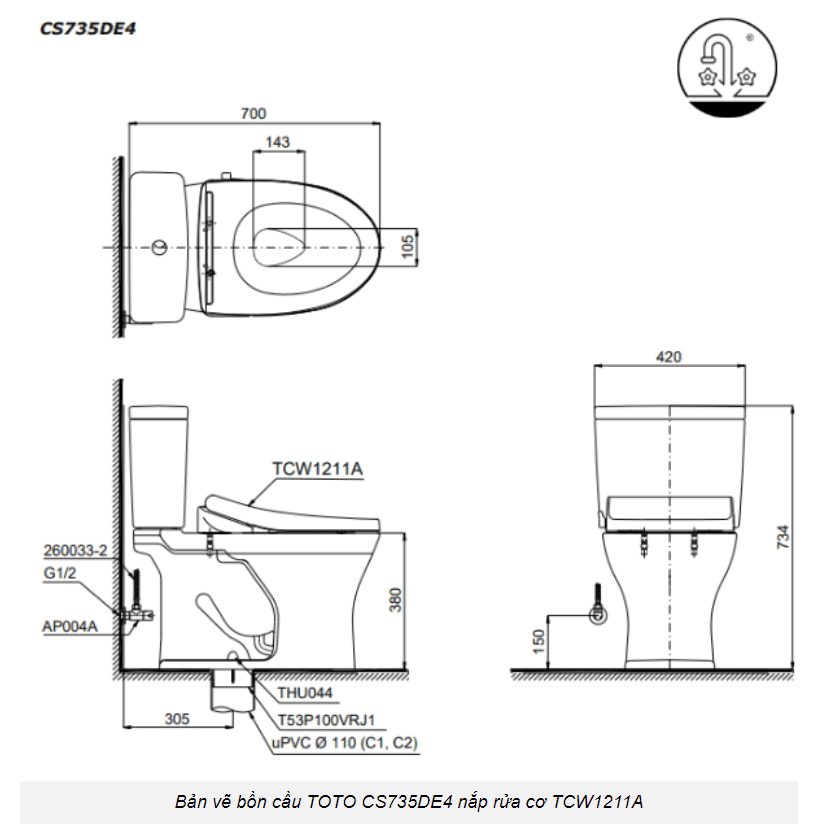 3 đánh giá cho Bồn Cầu TOTO CS735DE4#XW 2 Khối Nắp Rửa Cơ TCW1211A