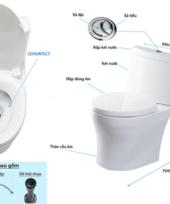 • Bồn cầu hai khối thiết kế thân kín, vành kín tiện dụng cho việc vệ sinh hàng ngày