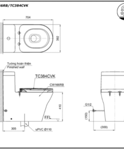 Bản vẽ kỹ thuật xí bệt liền khối TOTO CW166RB/TC384CVK