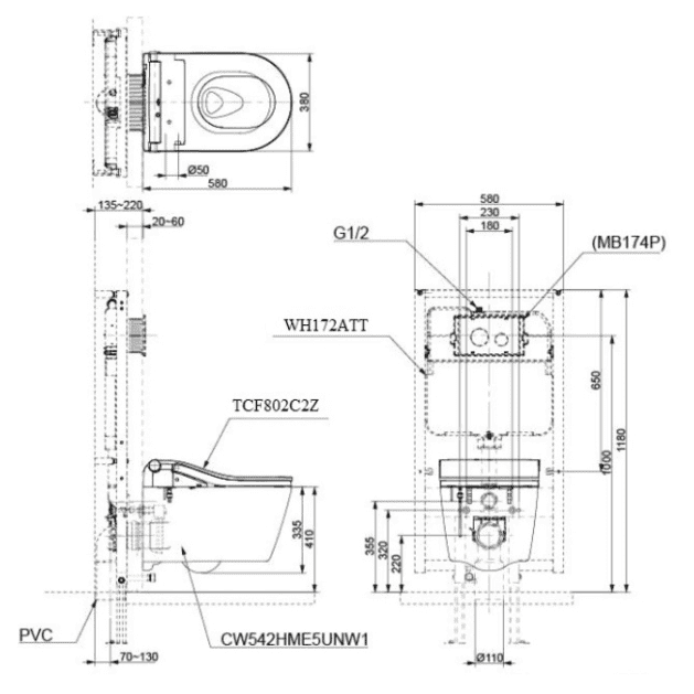 Bản vẽ Bồn Cầu TOTO CW542ME5UNW1 Nắp Êm TC513A
