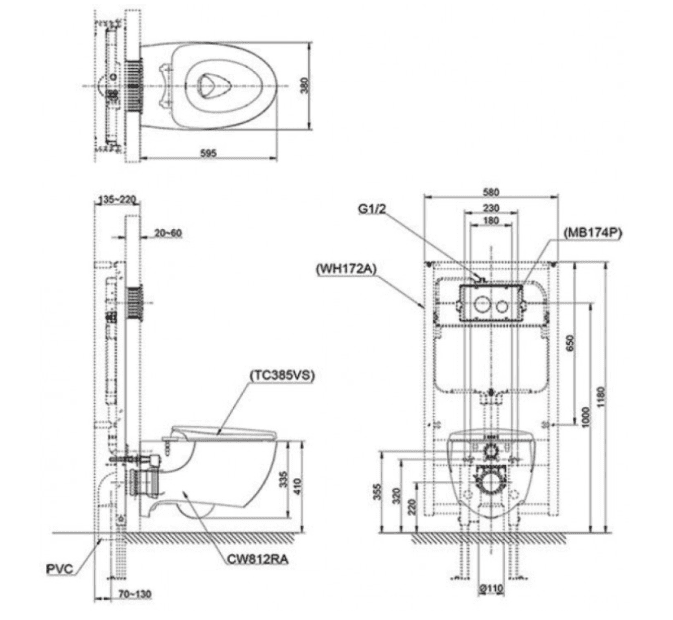 Bản vẽ Bồn Cầu TOTO CW812RA#W/TC811SJ#W Treo Tường