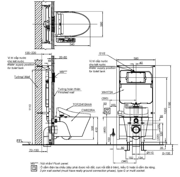 Bản vẽ Bồn Cầu TOTO CW822RA#W/TCF23410AAA#NW1/WH172A Treo Tường