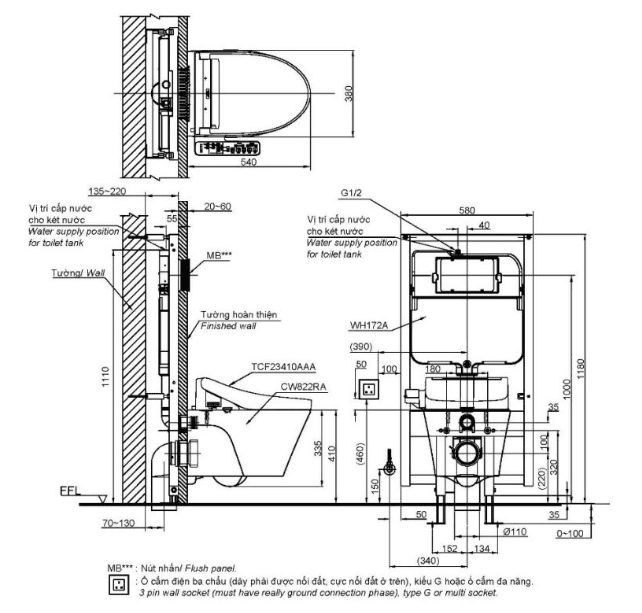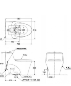 Bản vẽ Bồn Cầu TOTO CW822RA#W/TCF24410AAA#NW1 Treo Tường