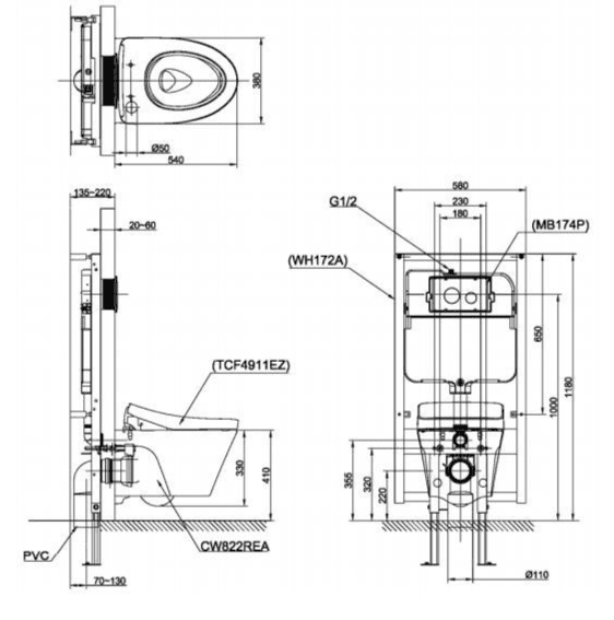 3 đánh giá cho Bồn Cầu TOTO CW822REA#W/TCF24460AAA#NW1/WH172AT /TCA465 Treo Tường