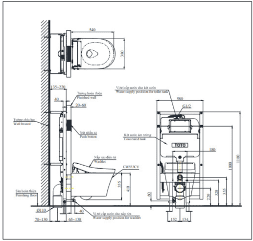 Bản vẽ Bồn Cầu TOTO CW822RFVA1/TREF35L2A/WH005A/TC600VS Treo Tường Nắp Mỏng