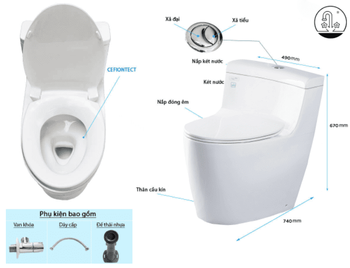 • Thiết kế: Thân dài, thân kín, vành kín tiện dụng cho việc vệ sinh hàng ngày