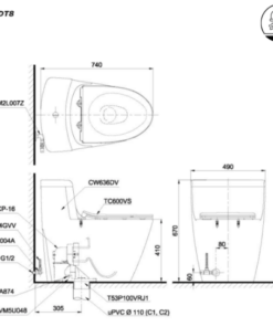 Bản vẽ bồn cầu TOTO MS636DT8 nắp rửa cơ TC600VS