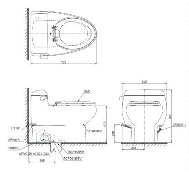 Review Bồn Cầu TOTO MS688E2#XW 1 Khối Nắp Rửa Cơ TCW07S