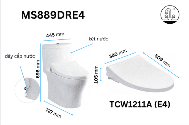 Thông tin cơ bản về bồn cầu TOTO MS889DRE4 (MS889DE4) một khối nắp rửa cơ