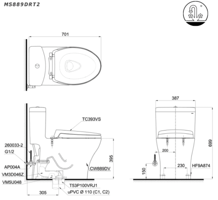 2 đánh giá cho Bồn Cầu TOTO MS889DRT2#XW 1 khối Nắp Đóng Êm TC393VS