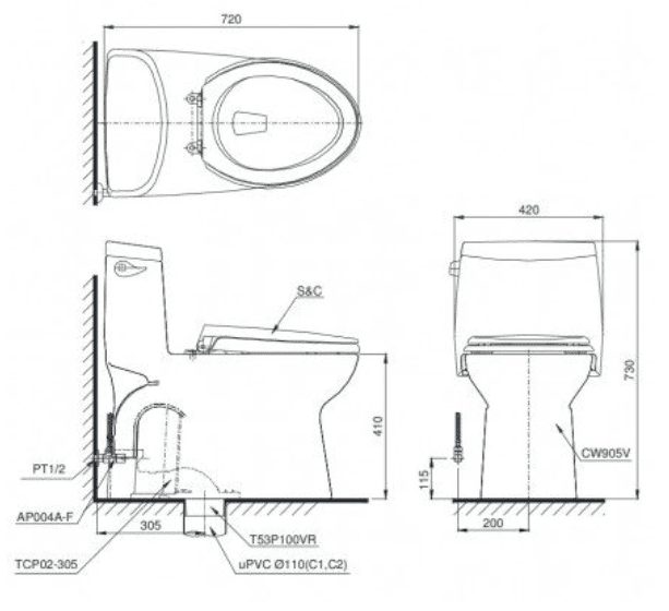 3 đánh giá cho Bồn Cầu TOTO MS905E2#XW 1 Khối Nắp Rửa Cơ TCW07S