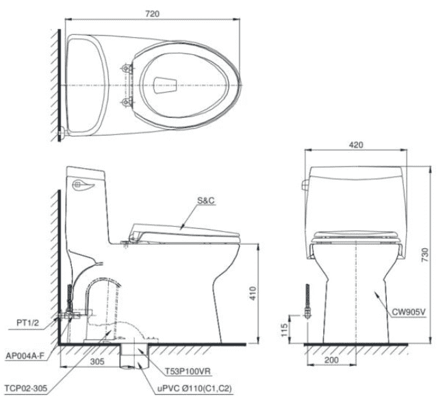 2 đánh giá cho Bồn Cầu TOTO MS905E4#XW 1 Khối Nắp Rửa Cơ TCW1211A