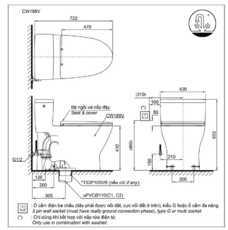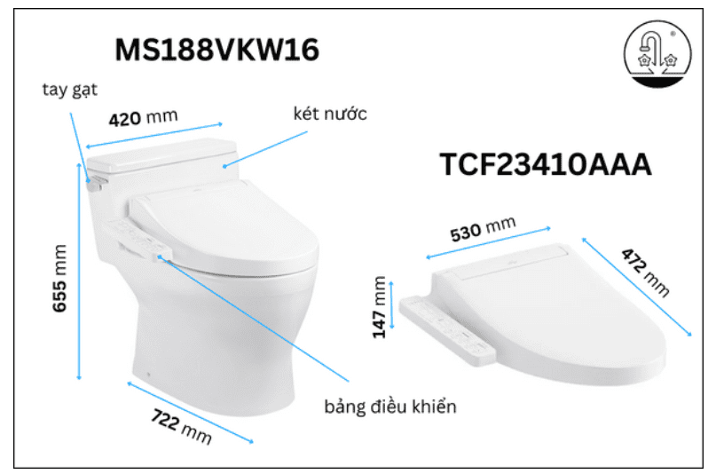 Review Bồn Cầu WASHLET TOTO MS188VKW16 1 Khối Kèm Nắp Điện Tử TCF23410AAA (220V)