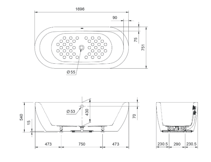 Sản phẩm có thiết kế tinh tế, đẹp mắt và phù hợp cho những không gian nhà tắm hiện đại. Kiểu dáng đặt sàn của bồn tắm cũng đem lại sự sang trọng và đẳng cấp cho không gian phòng tắm. Chất liệu nhựa Acrylic giúp sản phẩm có độ bền cao, bề mặt có khả năng chống trượt hiệu quả, đảm bảo độ an toàn tối đa khi sử dụng.