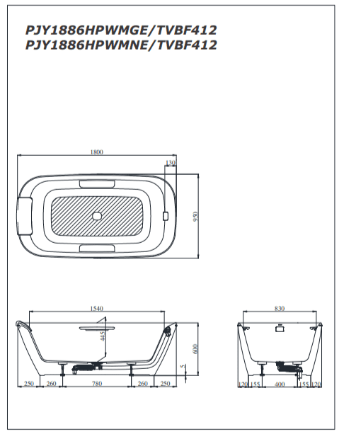 Thông số Bồn Tắm TOTO PJY1886HPWMGE#GW Đặt Sàn