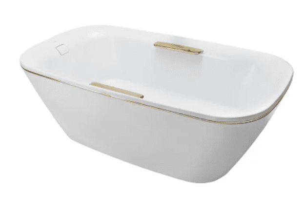 Thiết kế của bồn tắm TOTO PJY1886HPWMGE#GW Đặt Sàn tạo ra một diện mạo trang nhã và hài hòa. Viền màu vàng tạo phong cách sang trọng và điểm nhấn độc đáo cho bồn tắm.