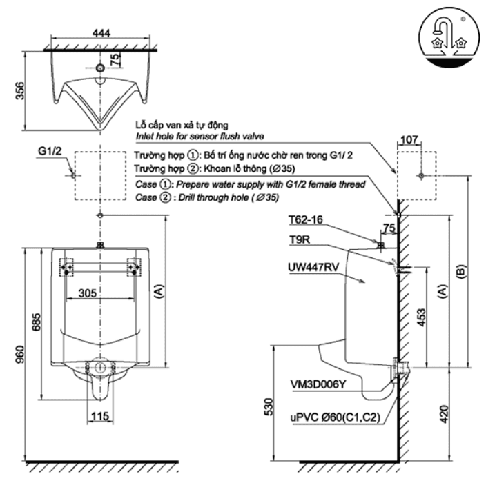 5 đánh giá cho Bồn Tiểu Nam TOTO UT447S#W Treo Tường